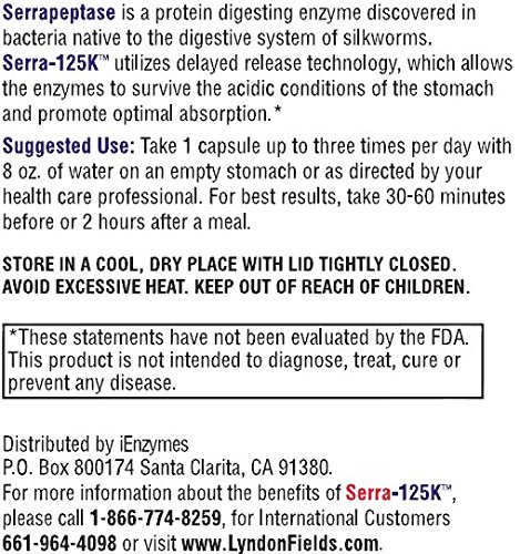 Serra-125K Is An Incredibly Potent Pure Serrapeptase Product. Serra-125K is Rated at 125,000 SPU Per Capsule