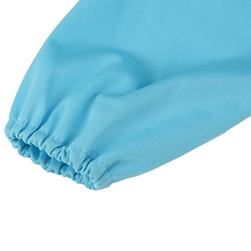 -. Feature : Material: 100% cotton and easy wipe lightweight PU waterproof fabric, stain and odor resistant. Lead free, PVC free / With sleeves for full clothing coverage and can double as an art smock. Great for kids who love paint and draw and can protect them from staining clothes. / Feeding time infinitely easier: while your baby is learning how to feed him/herself. You don't have to completely strip down your baby anymore or spend hours trying to clean out stains. ( neck and clothes, where they dropped their food) / Easy To Clean: Eat and Play Smock has no unnecessary seams where dirt can gather. The fabric is easy to wipe off and machine-washable. The Smock is made of Polyester,Waterproof and washable,dries very fast after cleaning. / Measures 14.6" across chest, 17" from neck down, 35" cuff to cuff, and sized to fit 6 months to 3 years. Light weight and easy to clean up, machine washable, hang dry.