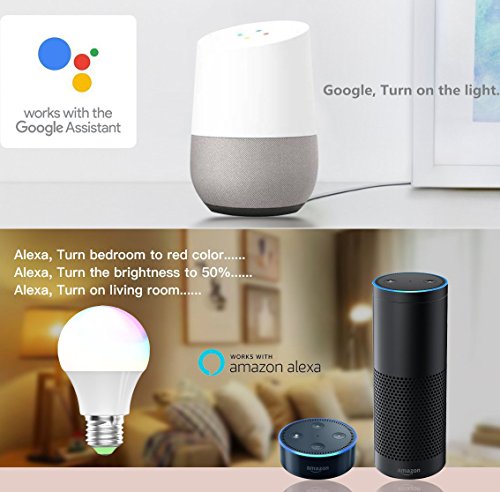 - Work with Amazon Alexa & Google Home Assistant, Voice Control your Smart WiFi LED bulb with your Amazon Echo or Echo Dot and Google Home Assistant