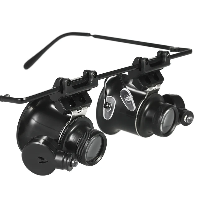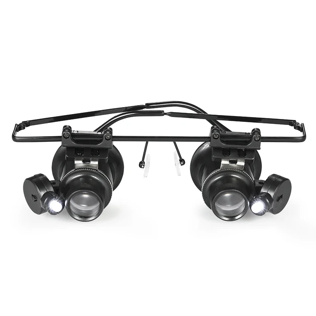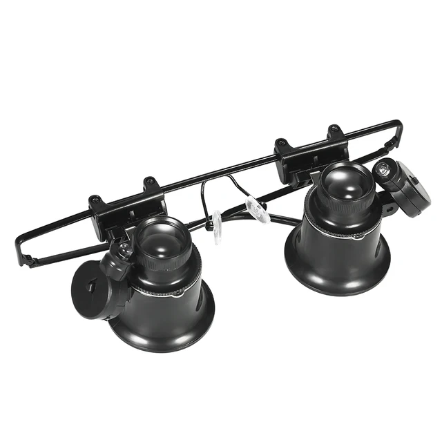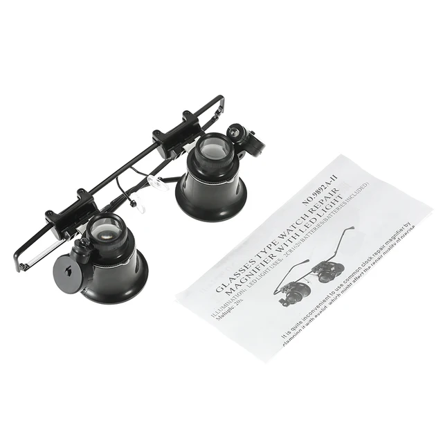 [해외]전문 시계 수리 도구 배 더블 눈 시계 수리 돋보기 확대경 W/LED 조명 보석상 돋보기 안경 수리 도구