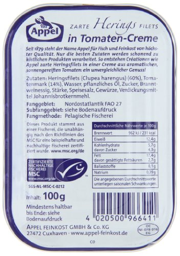 Appel Heringsfilets Tomaten-Creme, 12er Pack (12 x 100 g Dose)