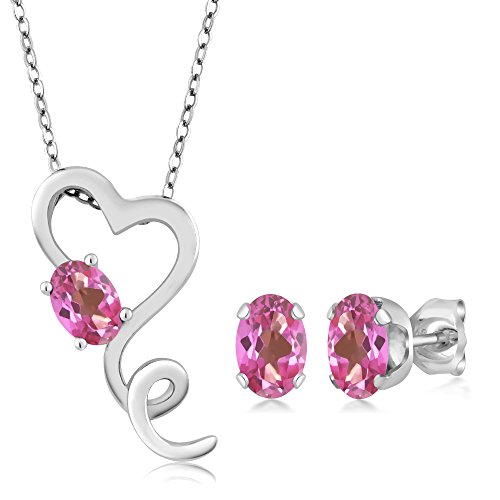 MEASUREMENT - Pendant:1 Inch Topaz: 0.55ct (6X4MM); Earrings: 1.90ct (7X5MM); 100% Natural Mystic Pink Topaz