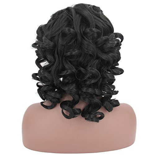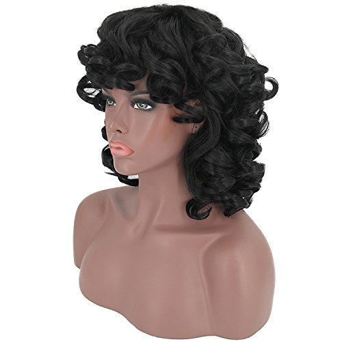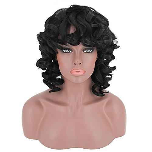 YOURWIGS Short Curly Kinky Wigs for Black Women Fluffy Wavy Black Synthetic Hair Wig Natural Looking Halloween Costume Wigs Heat Resistant Wigs with...
