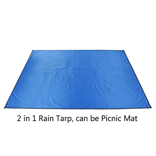 Not Only a Tent Tarp But also a Beach Blanket/Picnic: This beach blanket can be multi-used as tent moisture-proof mat, picnic mat, camping sunshade, a car-seat protector and rainproof awning. High quality, anti-uv, excellent sun shade and snow protection with Reflective Rope and Stakes, it can provide the perfect protection