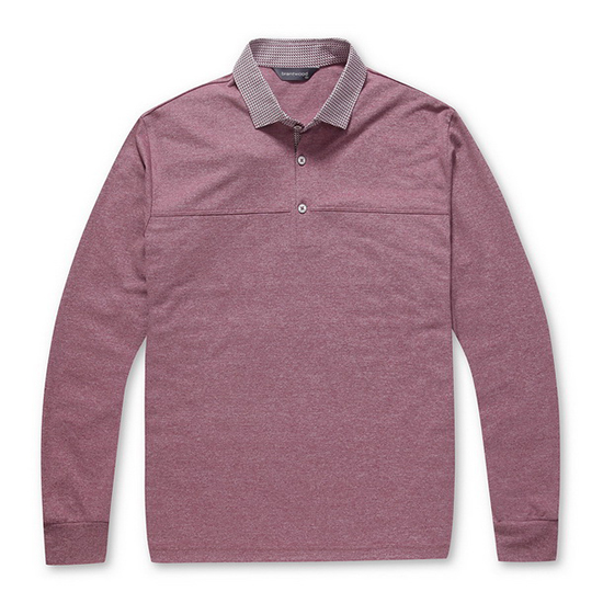 - 카라와 플라켓에 패턴 배색을 적용한 남성 티셔츠.