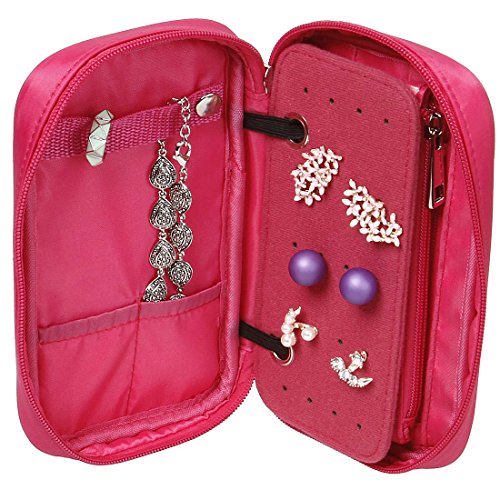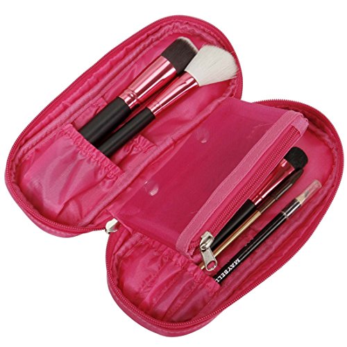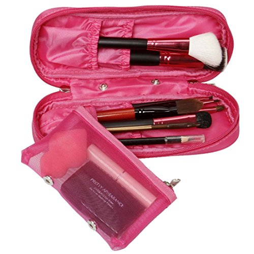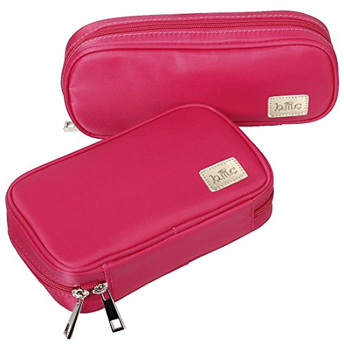 BMC Super Cute 2pc Medium Fuchsia Pink Soft Fabric Style Travel Cosmetic and Jewelry Case Set