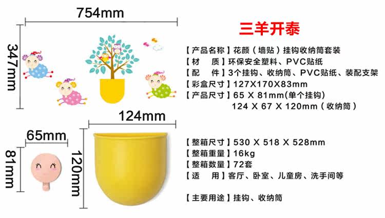 Accessories: 3 hooks, PVC stickers, tubular container, PVC stickers, mounting bracket