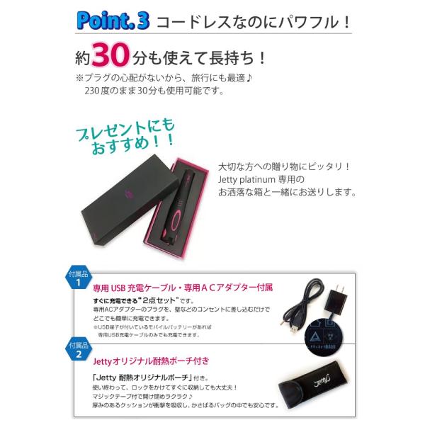 ヘアアイロン コードレス Jetty Platinum ジェティー プラチナ 充電式 SLJP-01-BP
