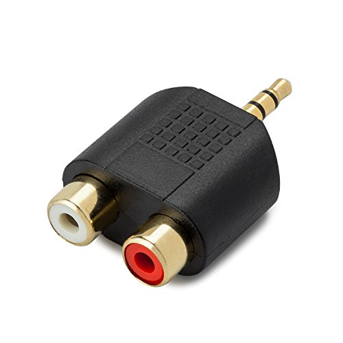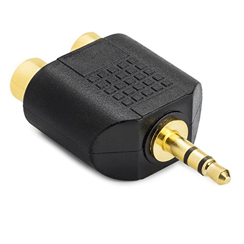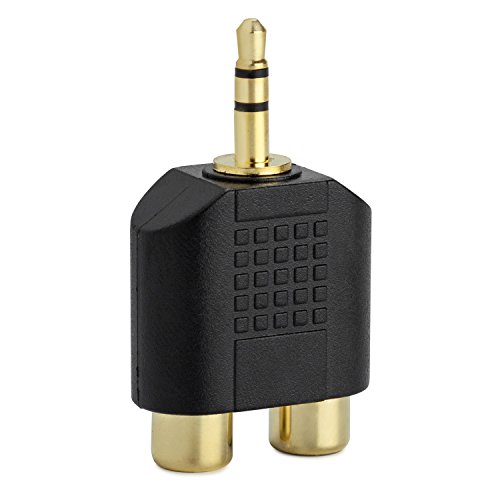 3.5mm Stereo Plug (Male) to Dual Stereo Jack (female) Splitter Adapter. Convenient 5-pack stereo Splitters provide spare or replacement Adapters to use on different audio systems. 3.5mm Stereo to 2 RCA adapters connect smartphones_ MP3 players_ or headphones with stereo jack to speakers or AV receivers with RCA port. Convert a 3.5mm Stereo Jack plug into 2 Female Red/White RCA Audio Adapter. Gold plated connectors increase conductivity and help reduce corrosion