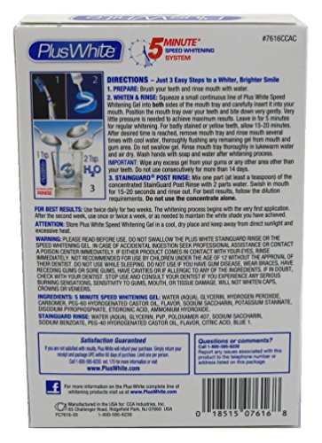 -. Binding : Misc. -. Brand : Plus White -. EAN : 0018515076168 -. Feature : 2 Pieces / Proven Bleaching Power That Whitens And Brightens / Contains An Enamel-Friendly Bleaching Ingredient / Stainguard Rinse Keeps Teeth Whiter / For Fast And Effective Whitening -. IsAdultProduct : 0 -. Label : Plus White -. Manufacturer : Plus White -. MPN : 7616CCAD -. PackageQuantity : 2 -. PartNumber : 7616CCAD -. ProductGroup : Beauty -. ProductTypeName : BEAUTY -. Publisher : Plus White -. Size : (2 Pack) -. Studio : Plus White -. Title : Plus White 5-Minute Premier Whitening System (2 Pack) -. UPC : 018515076168