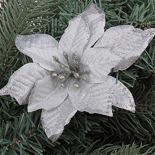 Christmas Tree Decoration Christmas Flower Christmas Decoration Ornaments Garland Decoration(Silver, 6pcs)
