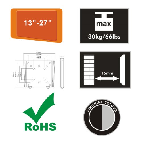 -. Feature : Fits most 13"-27" flat panel TVs / VESA Compliant - 50x50mm, 75x75mm, 100x100mm / Max Load Capacity - 30kg/66lbs / Color - Black / LCD Wall Mount