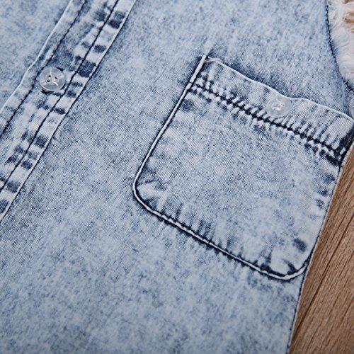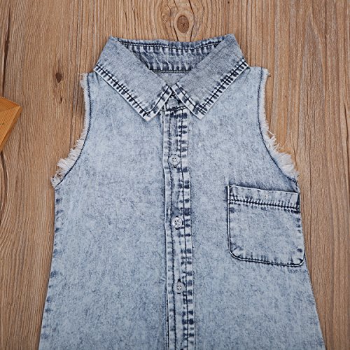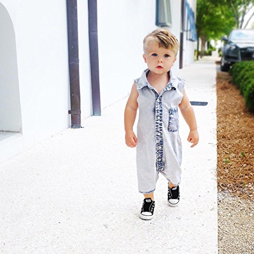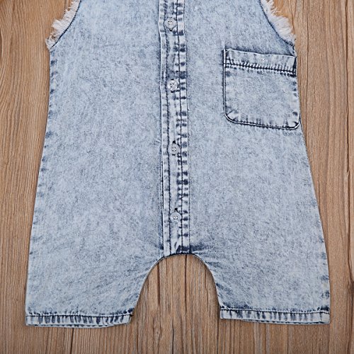 -. Binding : Apparel -. Brand : Charm Kingdom -. Department : baby-boys -. Feature : Material: Organic cotton / One chest pocket / Sleeveless jean romper / Cute jean romper with buttons down at front / Perfect for baby girls to wear in home or outside -. ProductGroup : Apparel -. ProductTypeName : SHIRT -. Title : Baby Boys Summer Sleeveless Denim Turn-down Collar Harem Romper With Pocket