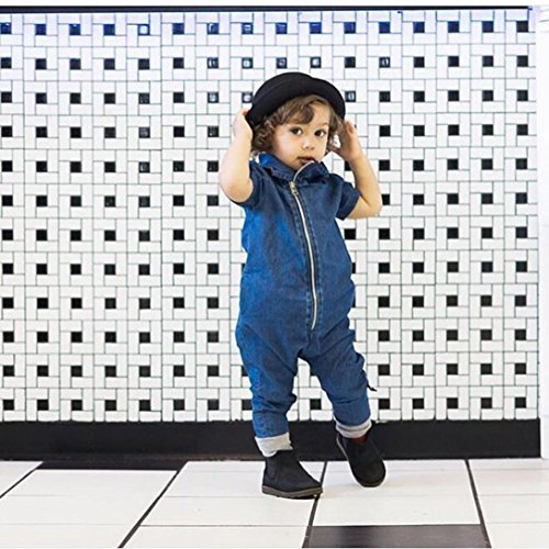 -. Title : Muxika Infant Baby Boy Girl Solid Denim Short Sleeve Zipper Romper Jumpsuit
