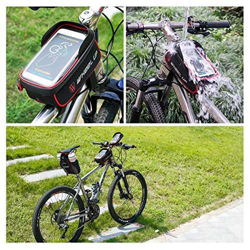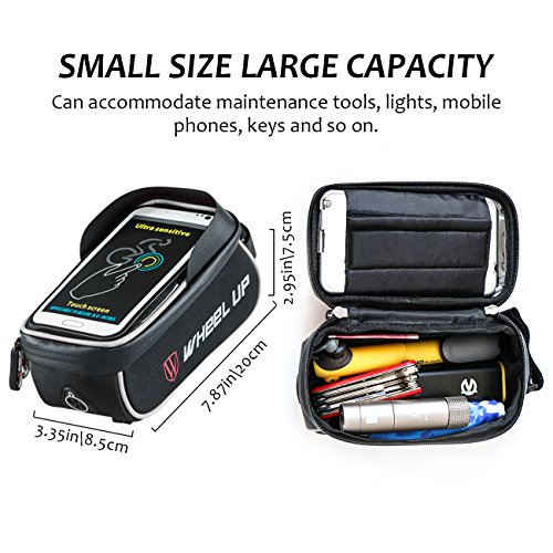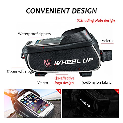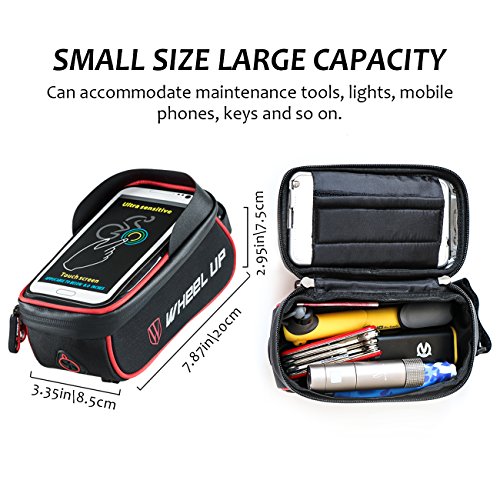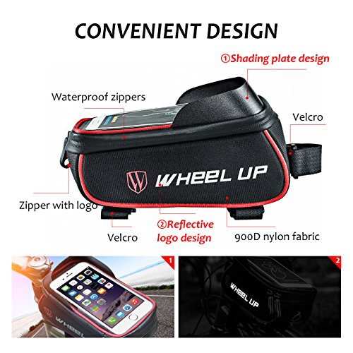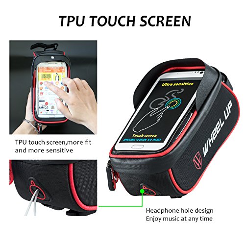Packing list 1*bike front frame bag Specifications 1.Material:900D Nylon 2.Color:BlackRed,BlackGray 3.Size for the Bag:20cm*8.5cm*7.5cm Feature 1.A big size 2.TPU touch screen design 3.Professional Shading plate 4.Headphone hole design 5.Reflective design 6.Waterproof zippers 7.Special design:All velcro sticky Applicable Below 6.0 inches If you are lookding forward for a bike front frame bag,You must need to try this one,will never let you disappointed.
