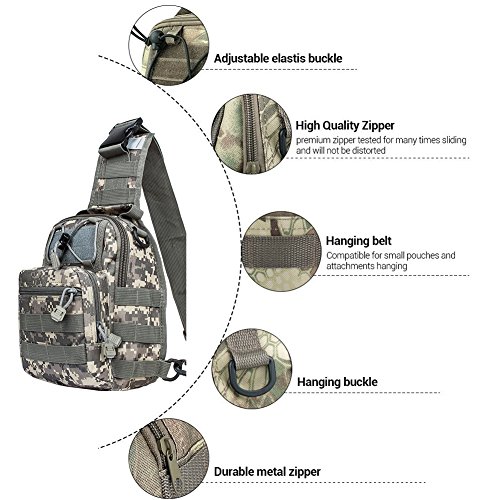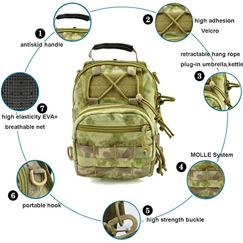 -. Feature : 1.MATERIALl: 1000D nylon fabric,High Density STITCHING and Bar-tack,high quality,high strength anti-tear, more wearable and durable. / 2.VERSATILE 4-WAY: Shoulder Bag, Chest Pack, Backpack, Hand Carry Bag, as a small tactical MOLLE pouch. / 3. USER-FRIENDLY SIZE DESIGN: small size large capacity,Light and compact;this tactical backpack military sport bag can accommodate 9.7 inch Ipad, phone, wallet, water bottle, umbrella, key, tissue and other outdoor necessities,make you feel at ease when you go out.Suitable For men ,women ,Kids,Unisex to use. / 4.SUITABLE for a VARIETY of OCCASIONS: great outdoor gear for running,camping,mountaineering,combat,photography,hiking,hunting,climbing,travel,fishing,etc. / 5.GUARANTEE: We're so confident you'll love this tactical backpack military sport bag that your purchase includes a 3-year manufacturers warranty and 100% money-back guarante.