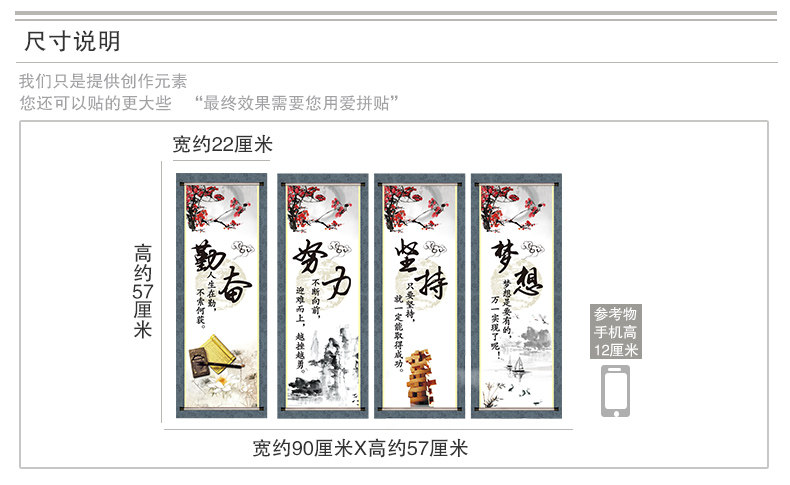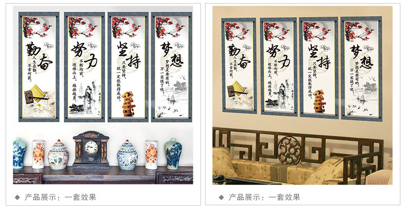 中式挂画励志墙贴纸贴画客厅背景墙装饰公司办公室布置字画四联画