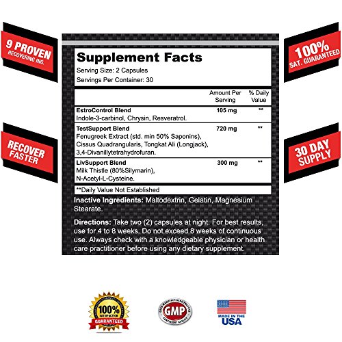 - Feature : CUTTING-EDGE 3-in-1 POST CYCLE THERAPY FORMULA - Users report OFF CYCLE helps keep your gains, boost testosterone levels, and normalize hormone levels, all while revitalizing your liver. Scientifically developed with powerful ingredients to boost natural testosterone production, reduce estrogen formation (anti-estrogen/aromatase) and enhance liver health. / BOOST TESTOSTERONE and CRUSH ESTROGEN - Powerful natural blends that help your body recover and act as a bridge between your cycles. OFF CYCLE does NOT contain any further damaging androgens or pro-hormones. Users report it helps restore normal levels of testosterone and estrogen while keeping hard earned muscle gains. / MORE THAN JUST A PCT SUPPLEMENT - Many users report OFF CYCLE is a testosterone booster in its own right - Making it ideal for helping with recovery from an extremely harsh androgen cycle, especially the liver. / WORLD CLASS POST CYCLE THERAPY - You get what you pay for. Users report OFF CYCLE stops the body from forming the aromatase enzyme which the body uses to convert androgens to estrogen, it restarts the body's natural production of testosterone, and it contains powerful antioxidants that enhance liver health. You've tried the rest - now try the best. / 100% MONEY BACK GUARANTEE - That's right, it works or you get your money back! If you don't keep your gains between cycles, and bounce-back after giving our product a try...you get a full refund with no questions asked! Order a bottle now with ZERO risk.