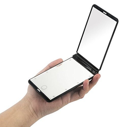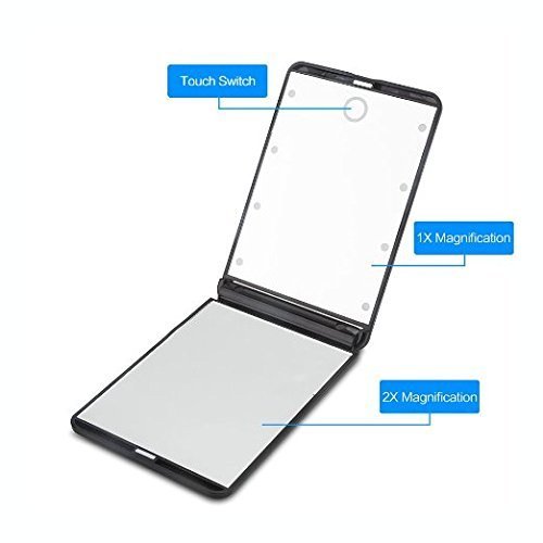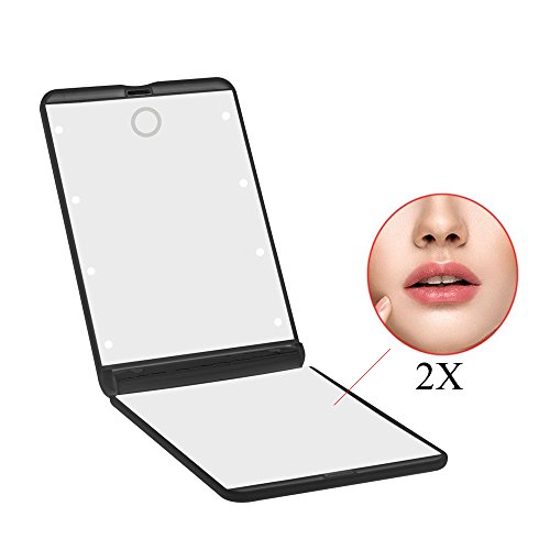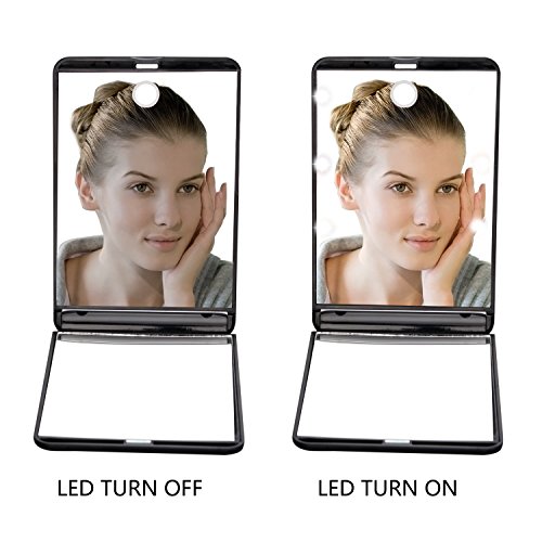 AlierKin Portable Led Lighted Travel Mirror - 1X and 2X Magnifying Adjustable Brightness Makeup Mirror Perfect for Pocket Purses (Black)