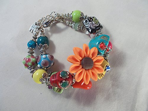 -. Brand : Out West Jewelry Designs -. Color : Multi -. Department : Women -. ProductGroup : Guild Product -. ProductTypeName : GUILD_JEWELRY -. Title : Chunky Day of the Dead Bracelet with Howlite Turquoise Sugar Skull, Lampwork Beads and Swarovski Crystal
