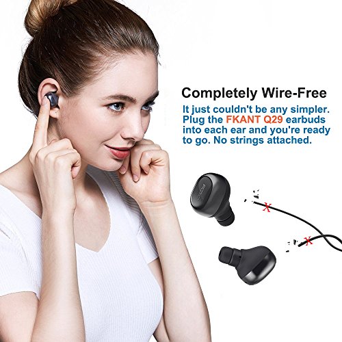 FKANT True Wireless Earbuds, Completely Cordfree Mini Bluetooth V4.1 Headphones Binaural Stereo Earphones with Portable Charging Case, 12 Hours Music Time for iPhone Samsung Cellphones and More