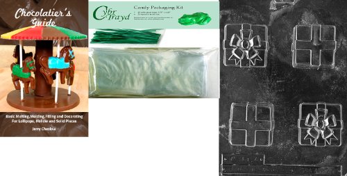 Cybrtrayd Box with a Bow, D029 Chocolate Mold with Chocolatier's Bundle of 25 Cello Bags, 25 Green Twist Ties and Chocolatier's Guide