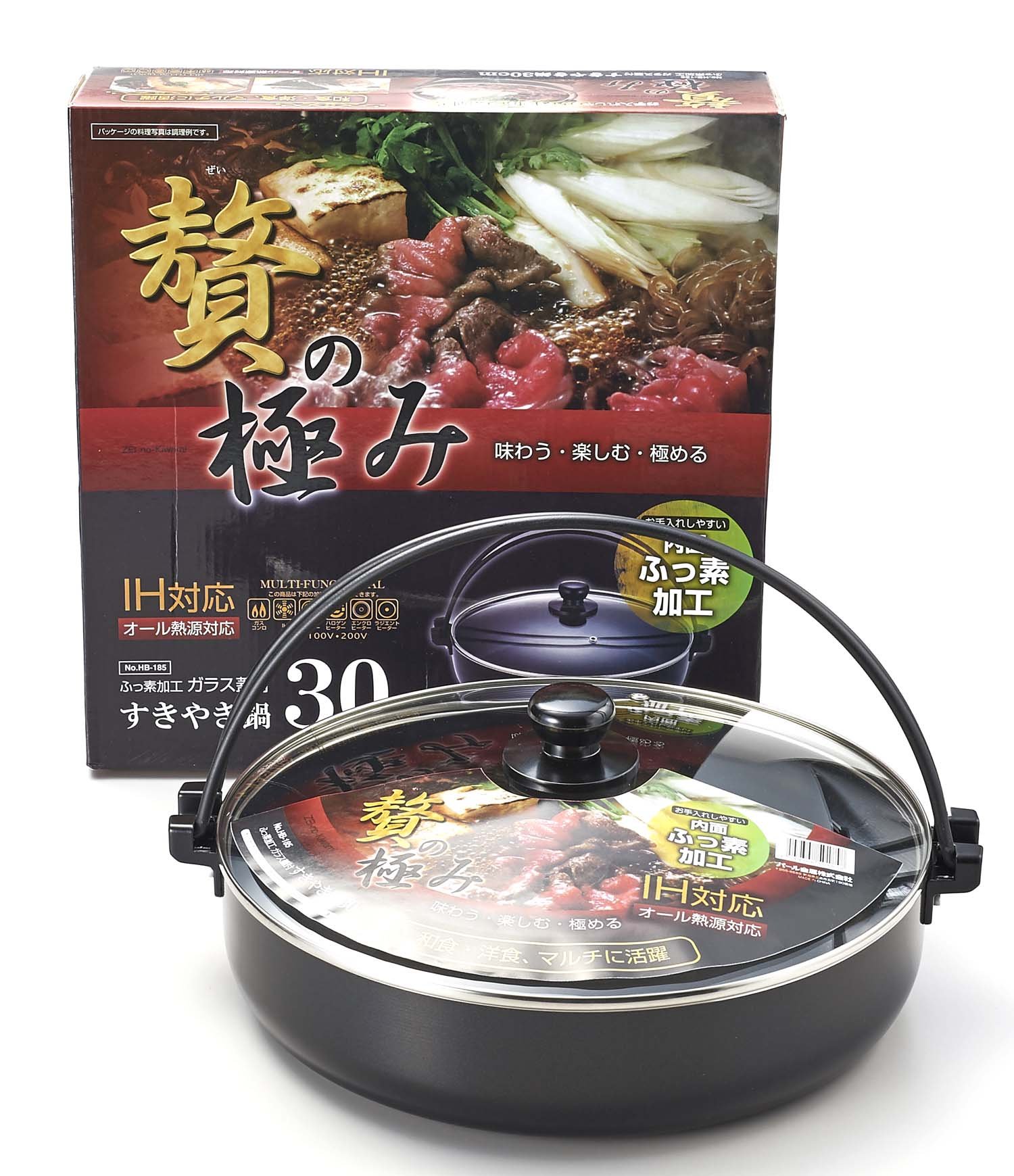 Parukinzoku sukiyaki extremity with fluorine processing IH corresponding glass lid of luxury pot 30cm HB-185