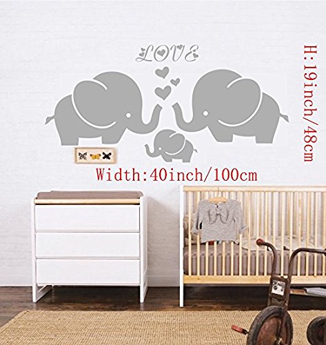 -. Title : Ares-Large Cute Elephant Family With Hearts Wall Decals Baby Nursery Decor Kids Room Wall Stickers, (Large)40''W x19''H, Grey