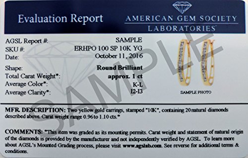 -. Title : AGS Certified 1 Carat TW Diamond Hoop Earrings in 10K Yellow Gold (K-L Color, I2-I3 Clarity)