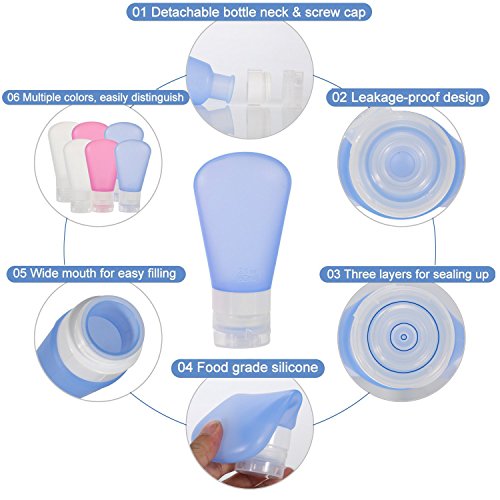 Silicone Travel Bottles Showpin Mini 89ml Bottles Carry-on TSA Approved Leak Proof Refillable Reusable Lotion Tube Compatible for Shampoo/ Shower/Liquid...