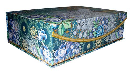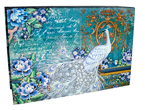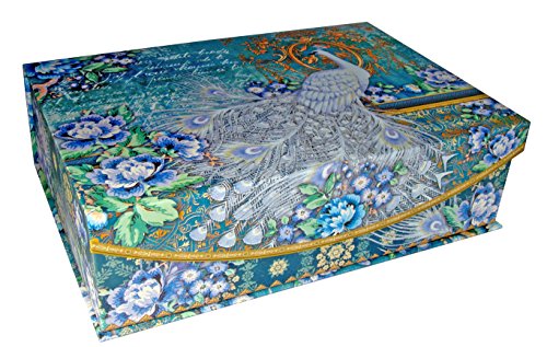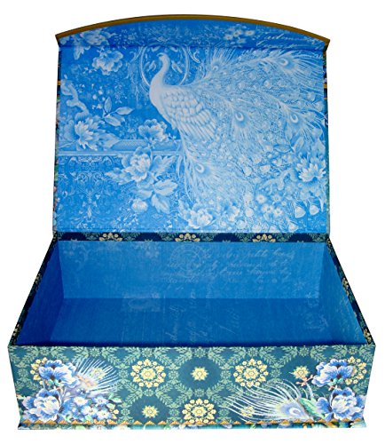 Punch Studio Decorative Rectangle Flip Top Nesting Box Blue Peacock 61360 Medium
