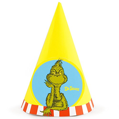 -. Feature : Includes (8) paper cone hats with strings. Perfect for celebrating birthday parties! / Add matching tableware, favors, accessories, or a party kit bundle to complete your Dr. Seuss party. / Features classic Dr. Seuss characters such as Cat in the Hat, Grinch, Horton, Sam I Am, Lorax, Thing 1, and Thing 2. / Great for kids parties, graduations, going away parties, farewell and retirement parties! Perfect for your childs birthday, sleepover or theme party!