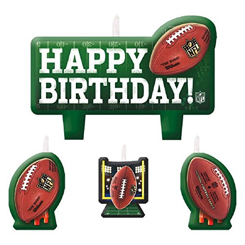 NFL Drive Birthday Party Molded Birthday Candle Set Cake Decoration, Green/Brown, Wax , Pack of 4