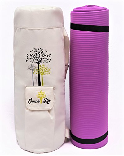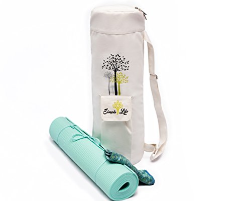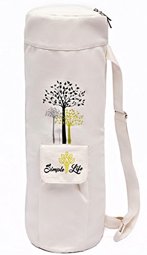 Simple Life 100% Cotton Stylish Exercise Yoga Mat Bag |Light Weight, Durable and Sturdy Full Zipper with Expandable Pocket | Multi-Functional Adjustable Strap| Fit Yoga Mat from 3mm to 12mm Thick