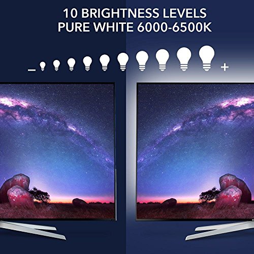 Pure White Backlight Reduce Eye Strain: Provides an even light behind the tv that phenomenally enhances image contrast, increases viewing comfort from scene to scene in movies, shows and games. (10 levels brightness dimmable)