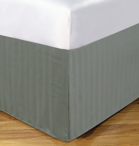 DreamSpace Damask Stripe Bed Skirt Dust Ruffle Microfiber Tailored 14" Drop Full, Grey