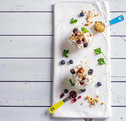 - COMFORTABLE HANDLES: The handles of the Measuring Spoons are ergonomic and, thus, very comfortable to hold. They are made of non-slip silicone so that they won’t slip even when your hands are oily, doughy or greasy from the meal preparation. Thanks to the handles, the Measuring Spoons are very easy to control!