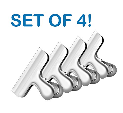 Large Durable Metal Chip Bag Clips Stainless Steel Kitchen Set - Christmas Deal! Set of 4