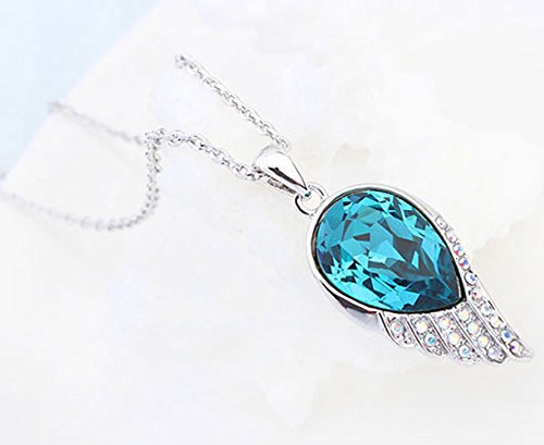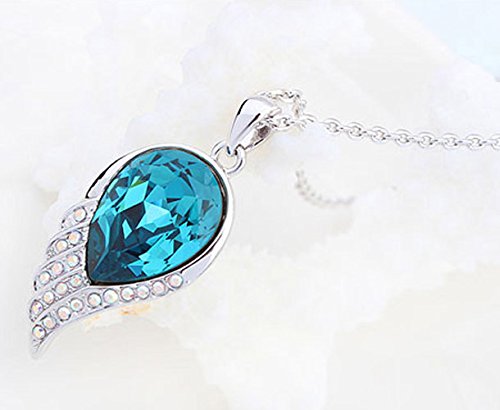 -. Title : Sojewe Silver tone Angel Fly Wing Pendant Necklace Navy Blue Swarovski Elements Crystal 18" Chain for Women