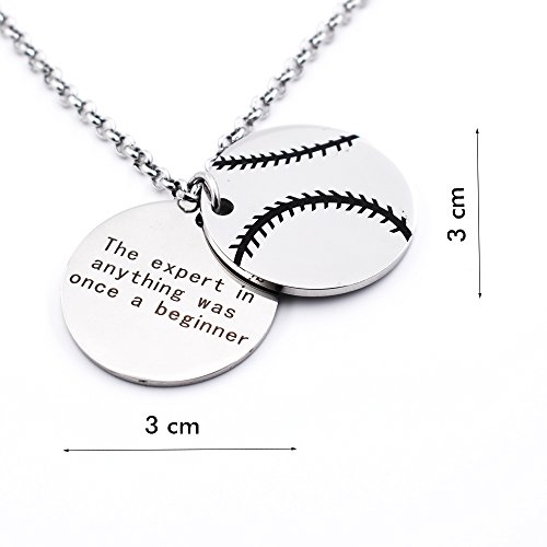 -. Feature : THEME:Inspirational Gifts.Baseball and dog tag with a beautiful quote"The expert in anything was once a beginner"can inspire someone you love.The reverse side of baseball can mark your own NO.&name, Make a unique encouragement gift for your children. / GIFT IDEAS/SEASONS: Best gift choice for special occasions such as a Birthday, Graduation, Anniversary, Wedding, Christmas, Easter, Valentine's Day and Mother's Day - Perfect for girlfriend,boyfriend,daughter,son, wife,husband,mom,dad,best friend, sister, brother,etc. / QUALITY:The Necklace is make of High quality stainless steel,it is an extremely durable&hypoallergenic metal. / DETAILS:Adjustable fine stainless chain can be longest worn at 23".Ship from USA by amazon with a elegant gift box / WARRANTY INCLUDED: If you have any problems with our items or services, please feel free to contact us first. We will do our best to solve any problems and provide you with the best customer services.