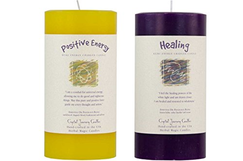 6" x 3" Crystal Journey Reiki Charged Herbal Magic Pillar Candle Bundle (Positive Energy, Healing)