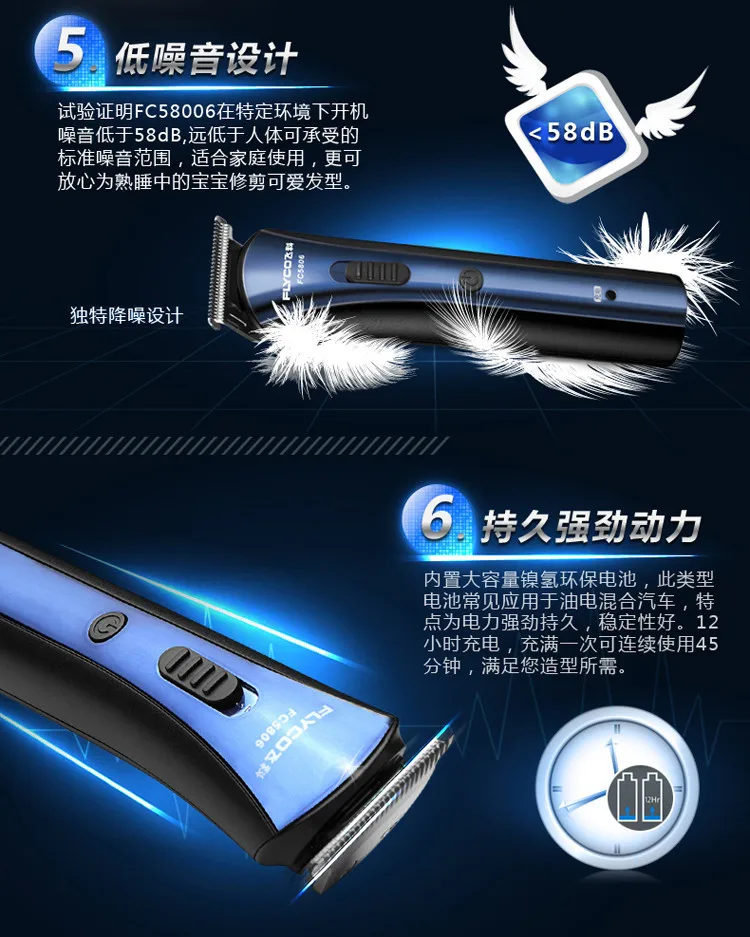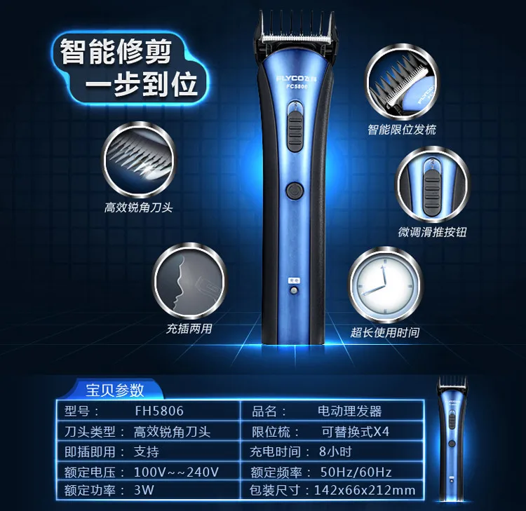 | Features | Special compound metal blades for excellent cutting; Comfortable to touch, Great design makes this hair clipper comfort to grip; A detachable blade feature allows you to change the blades quickly and easily as you clip; Notice: Please do not charging at temperature of below 0 centigrade or above 40 centigrade, do not charging surpass 24 hours continuously |
