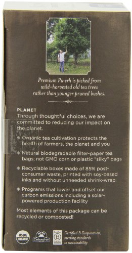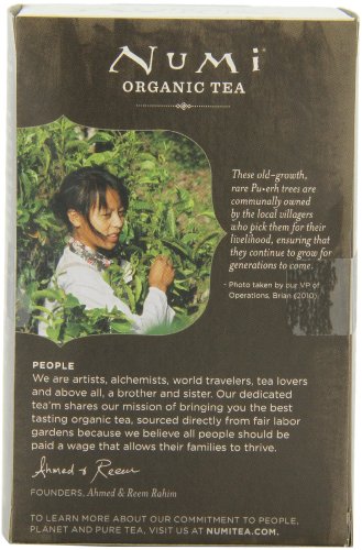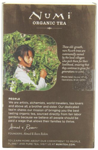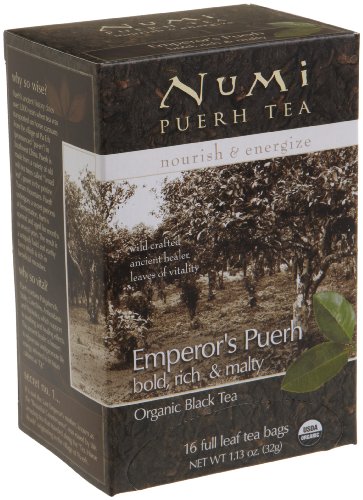 Brews a smoothly bold, dark cup of tea with energizing vitality and complex, earthy layers of flavor. Deeply satisfying as a coffee alternative, pu-erh tea has been treasured for centuries by emperors seeking health and longevity. Numi is proud to reveal the ancient tradition of pu-erh by offering a superior example of the secret healing tea in convenient tea bags for a regal steep wherever you may travelFeature