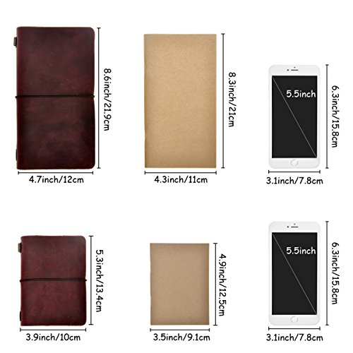 Perfect Size: Standard size 4.7" x 8.6"x 1.1"; Passport size 3.9" x 5.2" x 0.9"; Pencil case 1.4" x 5.9". 2 travelers notebooks in different size, easy to carry with you in your daily life or journey, to suit any needs