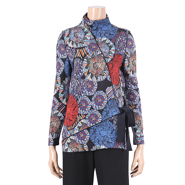이 제품은 사방스판의 편안한 프린트 폴라블라우스입니다