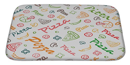 Gear New No Slip Microfiber Memory Foam Pizza Pattern with Hand Drawn Elements Bath Rug Mat, 34" X 21"