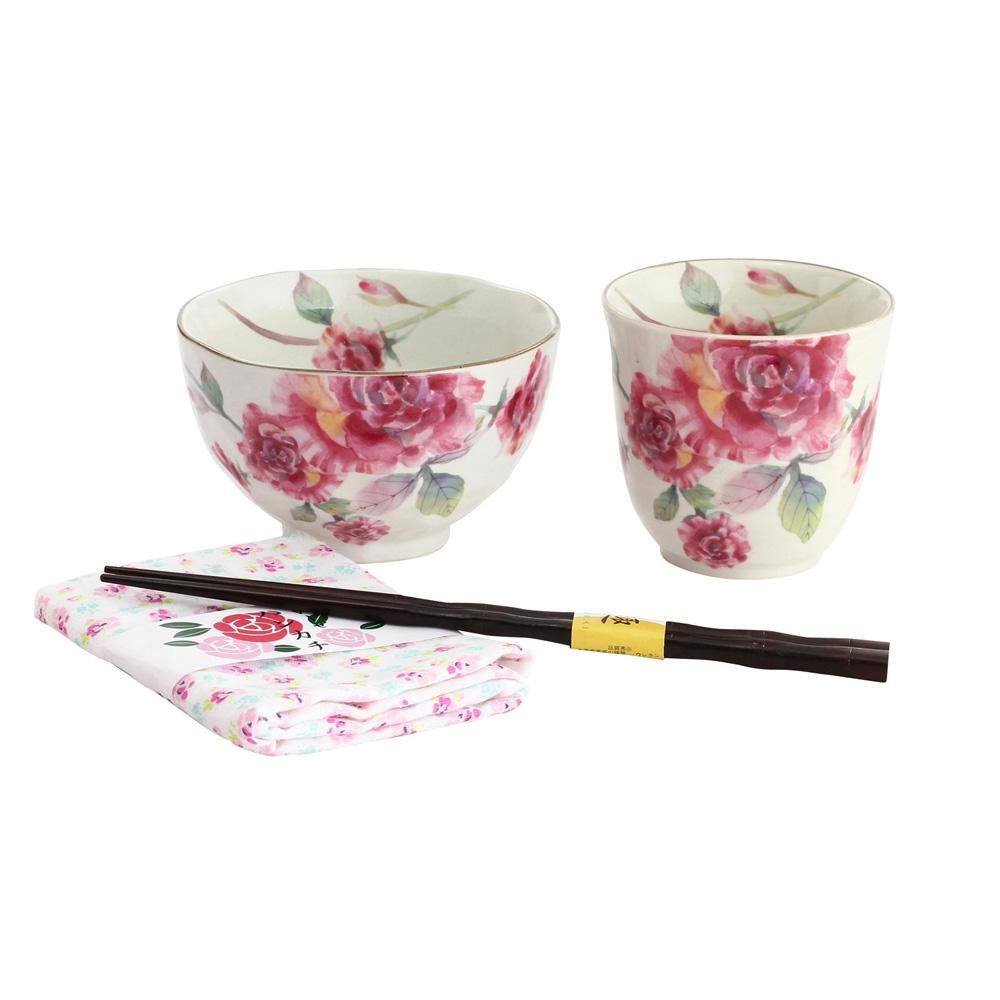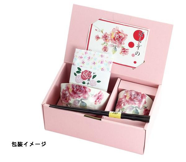 | 美しいばらが描かれた飯碗湯呑。大切な方へのギフトにも最適です。 |