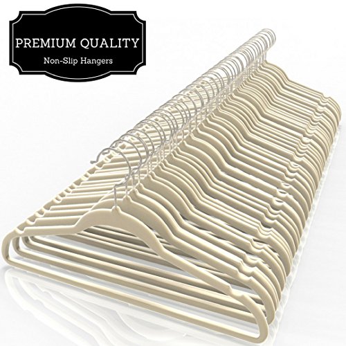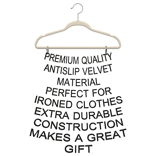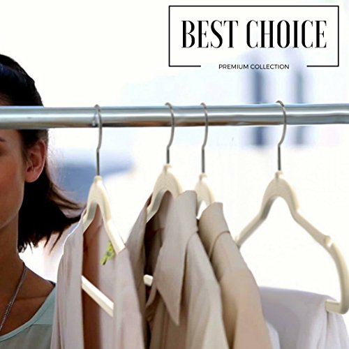 Premium Quality Velvet Hanger Set of 50 - Ultra -Thin No Slip Velvet Suit Hangers - Swivel Hooks, STRONGER Than Standard Velvet Hangers - Space Saving Clothes Hangers - Ivory