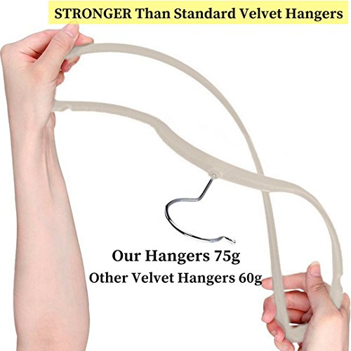 - PREMIUM QUALITY - Stronger then standard Velvet Hangers (Standard Velvet Hangers are 60g our hangers are 75g) - Top Quality Material: ABS Plastic, Flocked, Chrome Hook ; Hanger Size(LxWxH): 17.5"x0.2"x9.7"