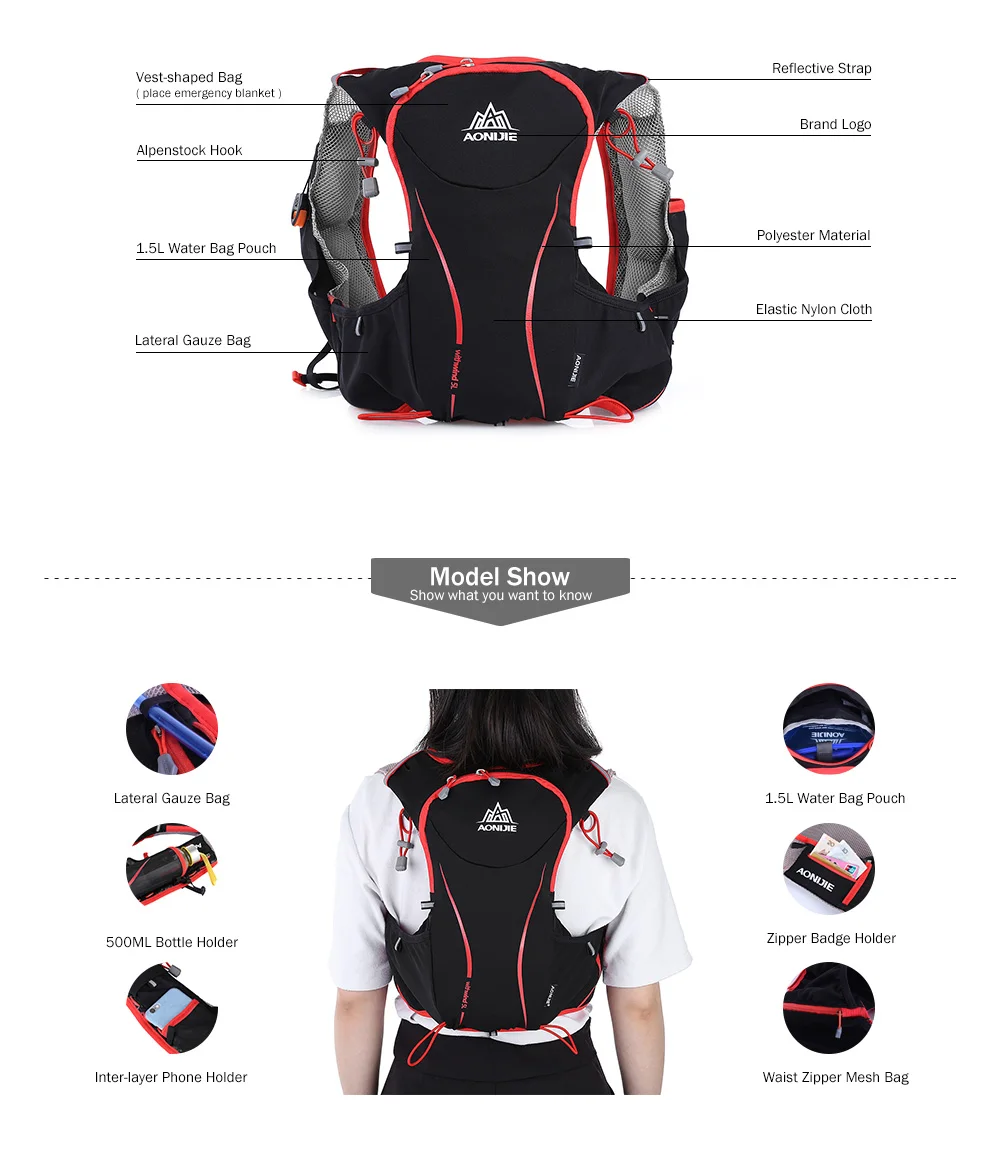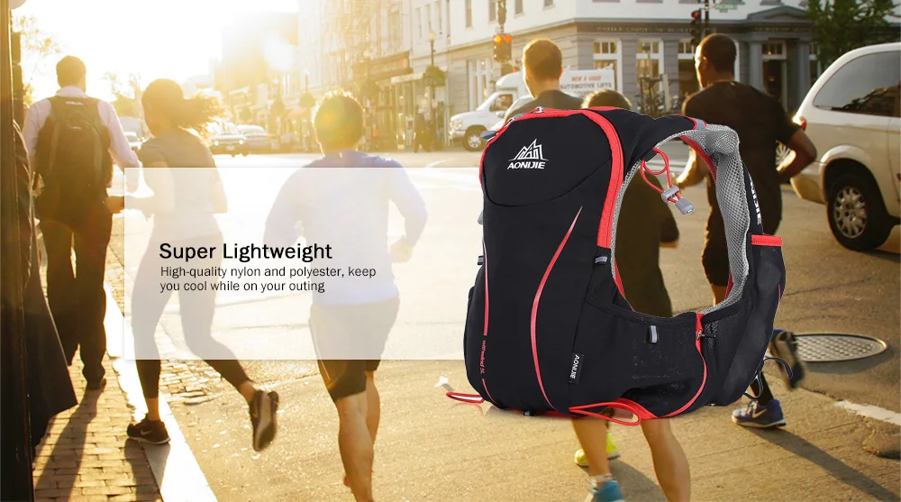 The AONIJIE hydration backpack features a super light weight?? reducing much of the load during the trip.